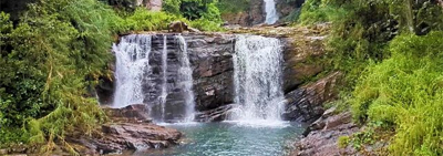 Kadiyanlena Falls is like a clear waterfall painting, gently dropping into a calm pool of water below. This waterfall falls into three parts. Two sections of it break up at the top of the main road and the other at the bottom. The fall and the arch bridge make this one of the most scenic waterfalls in the country.